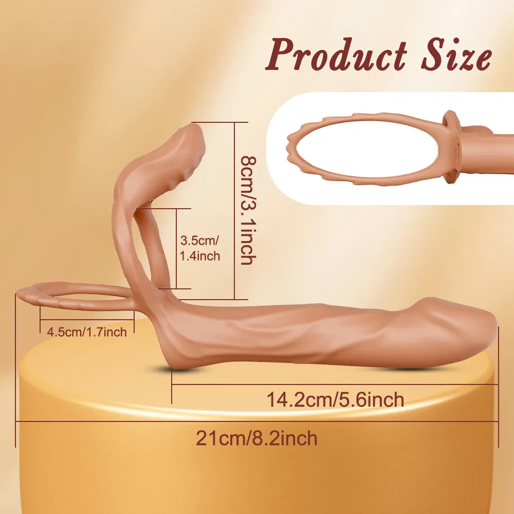 【Double Penetration Strap On Dildo】Featuring a realistically shaped penis that complements your cock while performing anal penetration, this sex toy comes with 2 vibrators, and when you penetrate,this sporty silicone toy dives into your lover's lower body to keep all the hot spots stimulated. The penis and ball ring add gentle contractions that help to enhance erections and staying power, making your sex sessions longer and more satisfying.Couples Sex Toys.
