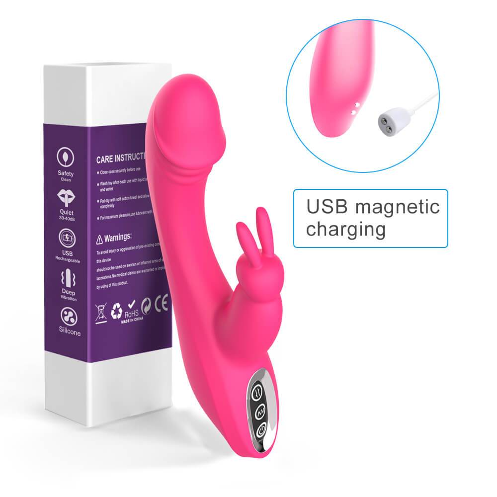 G spot Rabbit Vibrator Rechargeable Waterproof Dildo Vibe Dual Motor Clit Stimulator with 12 Vibration Modes Sex Toys for Couple