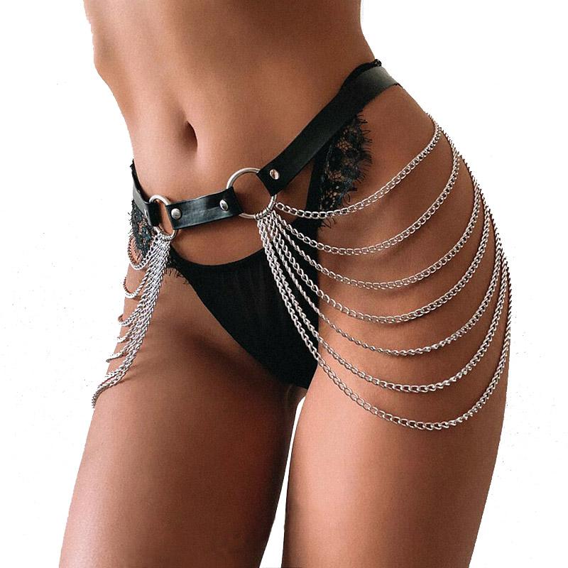 Leather Harness Goth Punk Leather Women Chain Belt Black Waist Strap Body Chain Adjustable Festival Body Harness Raver Dance Harajuku Belts
