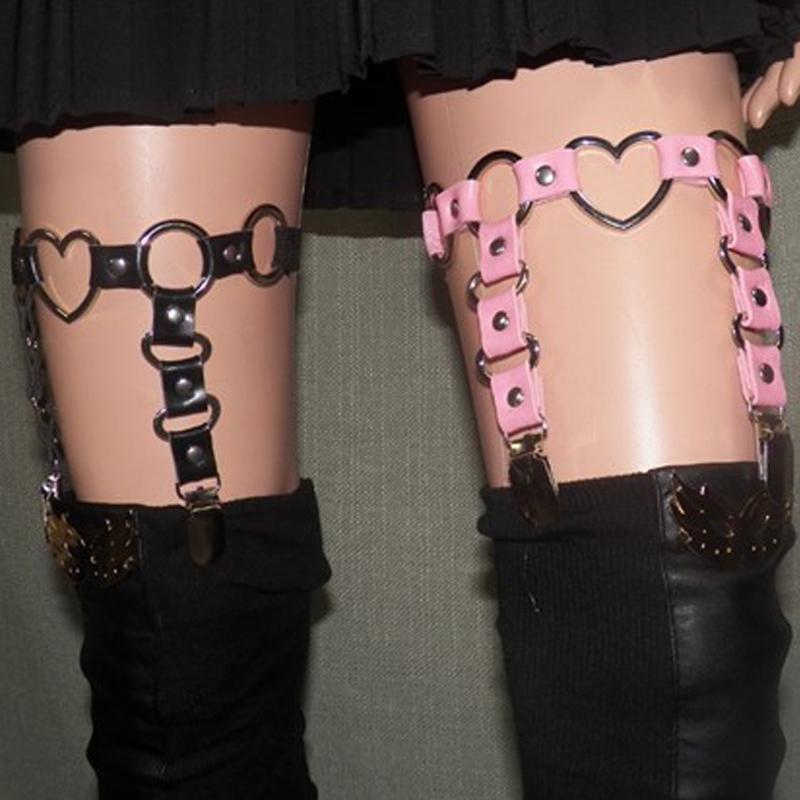 Leather Harness Set Sexy Girl Garter Belt Rivets Harajuku Women Punk Love Leg Ring Thigh Harness Heart Garter Adjustable Size For Women Toy